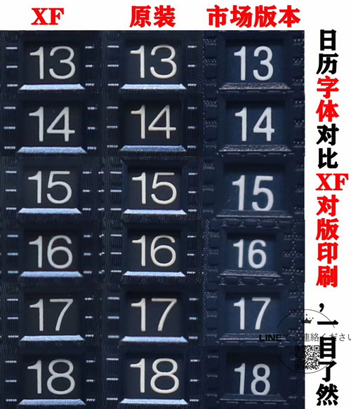 日付表示の数字:すべてのフォントを正規品と照合し、完全に一致するよう調整されています。