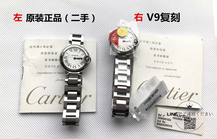 カルティエ バロンブルー WSBB0067 28mm クォーツ 1:1 クローンモデル 正規品との比較レビュー