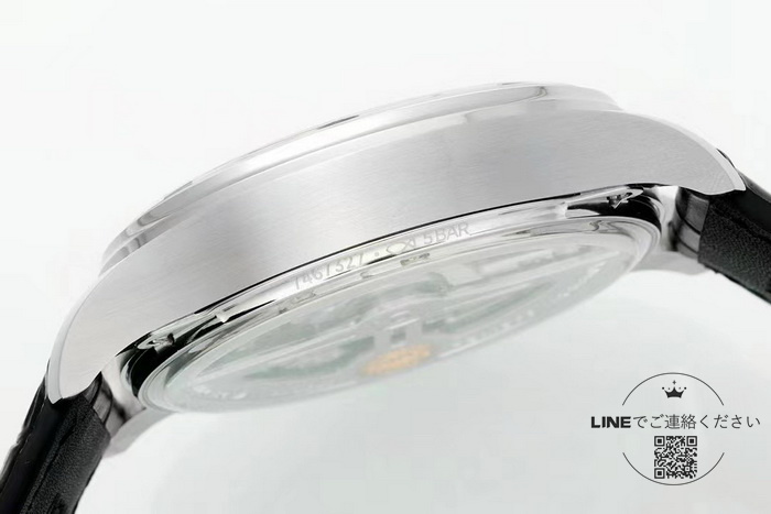 ケースサイズは42.4mm × 13mm。レプリカモデルには52011ムーブメントを搭載し、フルパワーで約4日間のパワーリザーブを備えています。仕上がりのクオリティは引き続き高く、ムーブメントの外観も正規品と同様のスタイルで再現されています。