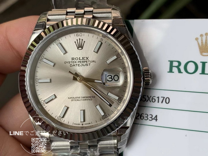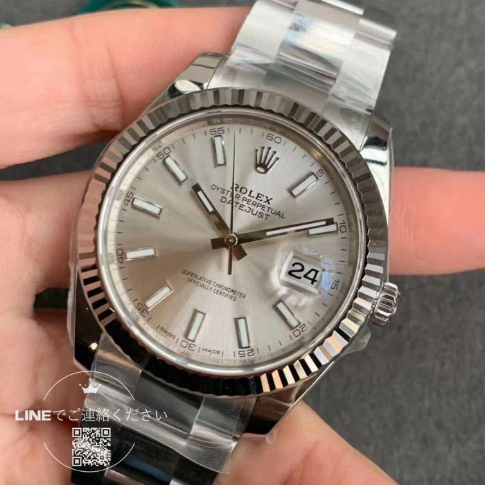 これはシルバー色のロレックス デイトジャストであり、このカラーはロレックスの非常にクラシックな色の一つです。デイトジャストシリーズが今日まで発展する中で、このカラーは常に維持されています。