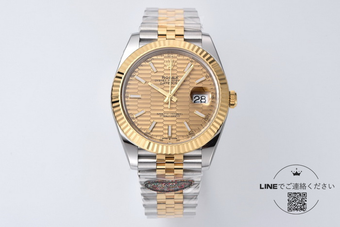 このデイトジャストモデルは、ゴールドの波模様の文字盤を特徴とするツートーンデザインです。ムーブメントには、高品質なレプリカ3235を採用し、最大70時間のパワーリザーブを提供します。直径41mmのケースに施されたPVD電鍍加工は、ゴールド部分の色持ちを長期間維持します。ゴールド仕様のロレックス デイトジャスト 41mmの最高級レプリカに関する最新情報をぜひお見逃しなく。